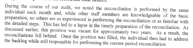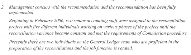 Excerpt - Final Report - page 13 - Response #2 And about those "two senior accounting staff" and Oh, and by the way, documents have shown the Fraudulent transactions actually occurred
