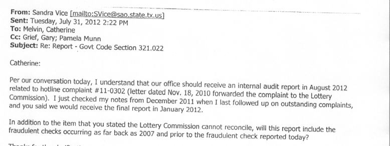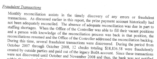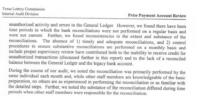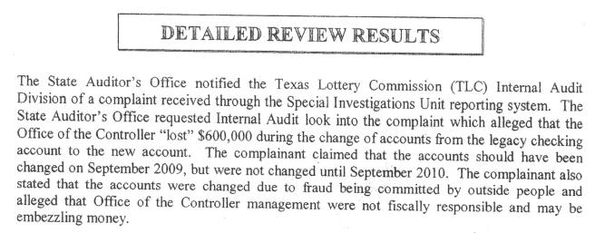 "Politely Another example - "unauthorized activity/transactions" - In Part 5, I disputed Management's claims and showed how On Sunday, Oct 13, 2013, the Austin American Statesman In Part 6, I explained, in depth, what the Texas Lottery was supposed to do Additionally, I
