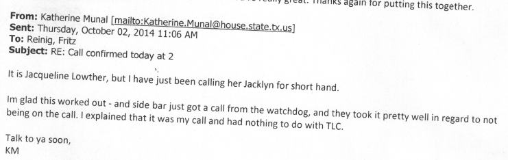 Note her remark about the "watchdog?" She's referring to me. If it was her decision in the beginning to not have me involved in the call, then needless to say, there would have been no need to have made the remark she did in her email to the Texas Lottery. It appears this woman lied to both her constituent and to me. I suggested the player make an open records request from Sanford's office which she did. Ms. Lowther's written open records request said in part, "I would like to receive a copy of all letters, faxes, emails, phone records your office has received from anyone regarding the Texas Lottery Fun 5's scratch ticket. .... Additionally, I would like to receive copies of any/all correspondence your office has had with the Texas Lottery. Please include your writings/communications to the TLC as well as their response to you." (I would have scanned her request in for you but my copies are too light to scan) After seeing what they sent the player, it would be my opinion that Sanford's office is in violation of the Open Records laws as the player did not get a copy of the emails I possess nor other communications that I have been led to believe they have received with regards to the Fun 5's tickets. Ms. Lowther received a copy of her original letter to them, copies of her Fun 5's tickets that she sent them and a contact profile report in her name. Yet Representative Sanford wrote ....
