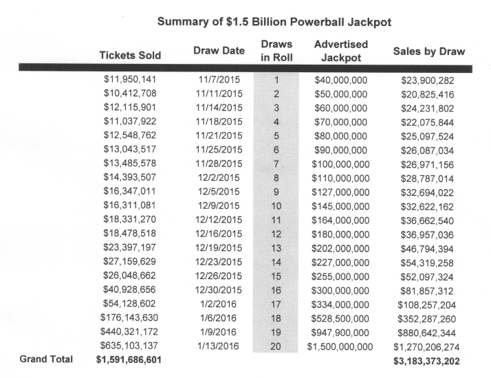 Powerball - Lottery Sales by the draw, click here